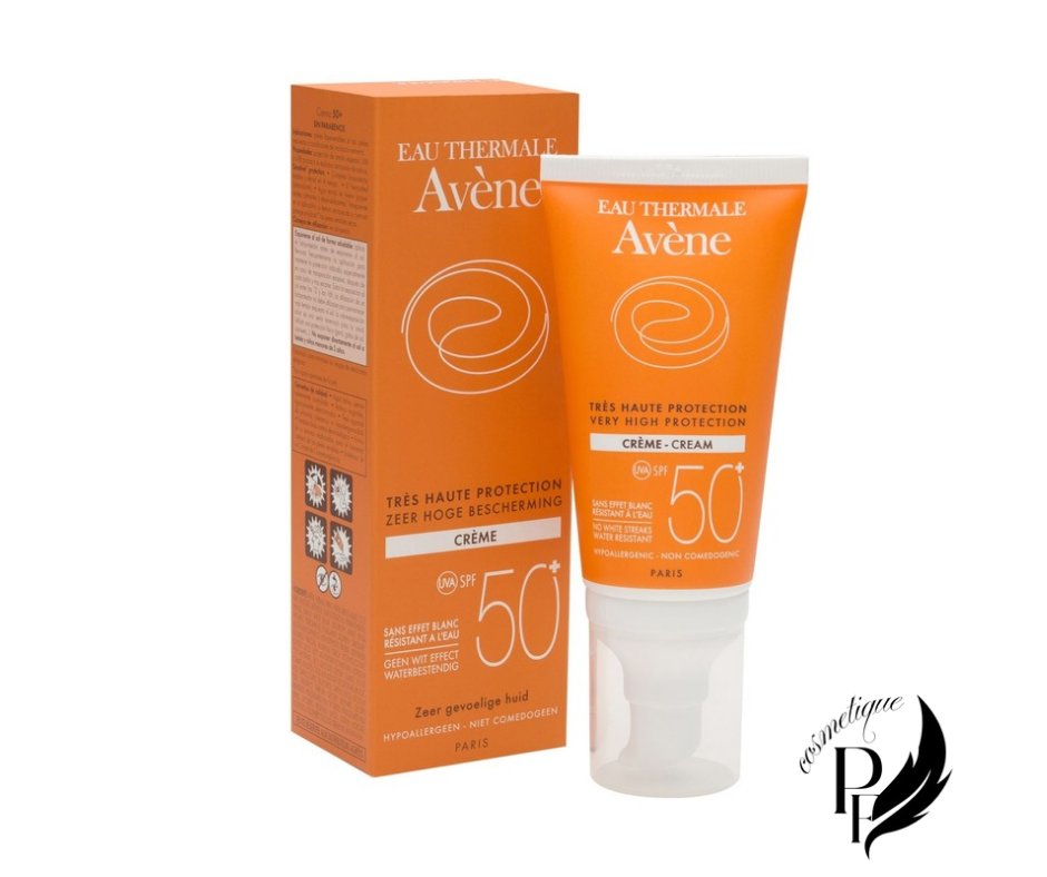 واقي الشمس Avène Eau Thermale Crème SPF50+ يمنح حماية جد عالية ضد أشعة الشمس، بتركيبة خفيفة بدون أثر أبيض ومقاومة للماء. مناسب للبشرة الحساسة، هيبوأليرجينيك ولا يسبب انسداد المسام.
