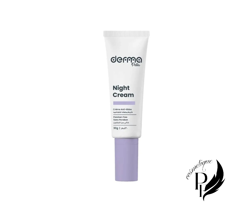 كريم ليلي من Derma Pella, مصمم خصيصاً لمحاربة التجاعيد وتجديد البشرة أثناء النوم، بخلاصة مكونات فعّالة وآمنة خالية من البارابين.