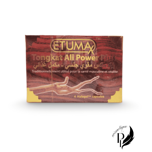 مكمّل غذائي من ETUMA يحتوي على مستخلص Tongkat Ali، يُستعمل تقليديًا لدعم الصحة الرجالية، الحيوية، والطاقة البدنية بشكل طبيعي. يأتي في علبة تضم 4 كبسولات Halagel.